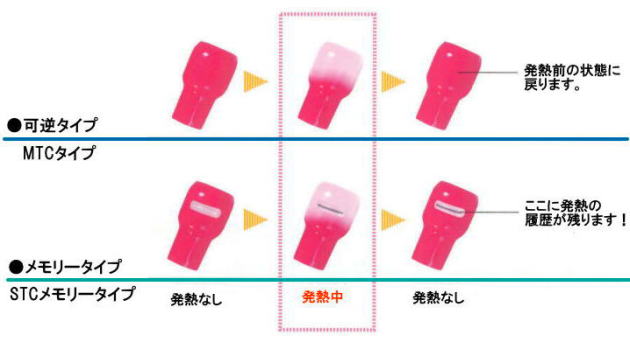 ※1 サーモタイ可逆タイプは、MTT-Sのみ 赤N・黄・青・黒・灰・茶の6色となります。 ※2 サーモタイ メモリータイプは、赤と黒の2色となります。 |