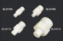 22 | PPチューブロックアダプター [材質]ガラス繊維強化PP等。 [タイプ]ストレート(オス&メス) [適用チューブ] フッ素樹脂チューブ、PE等の半硬質チューブ [適用チューブサイズ]4x6mm〜10x12mm [ネジ]R1/8〜R3/4 Rc1/8〜Rc1/2 [種類]約27種類 |