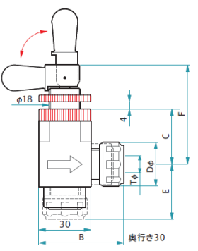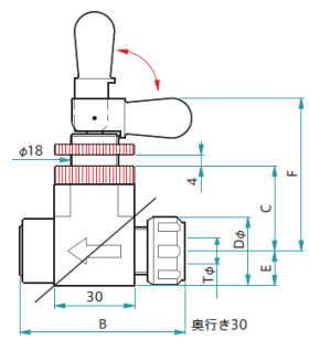 トグルバルブアングル型は、ワンタッチ式に弁が開閉します。